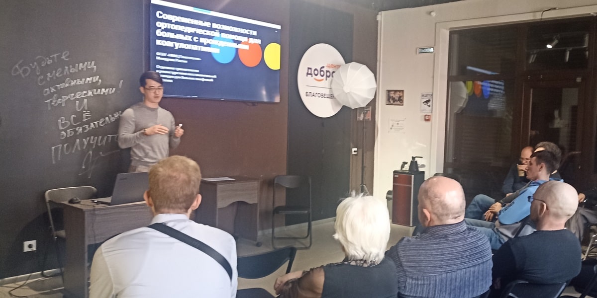 Пользуясь моментом участия в работе школы, участники смогли задать конкретные вопросы о возможностях оказания ортопедической помощи пациентам ФГБУ «НМИЦ гематологии» Минздрава России. Были получены ответы на вопросы организации такой помощи в г. Москва.