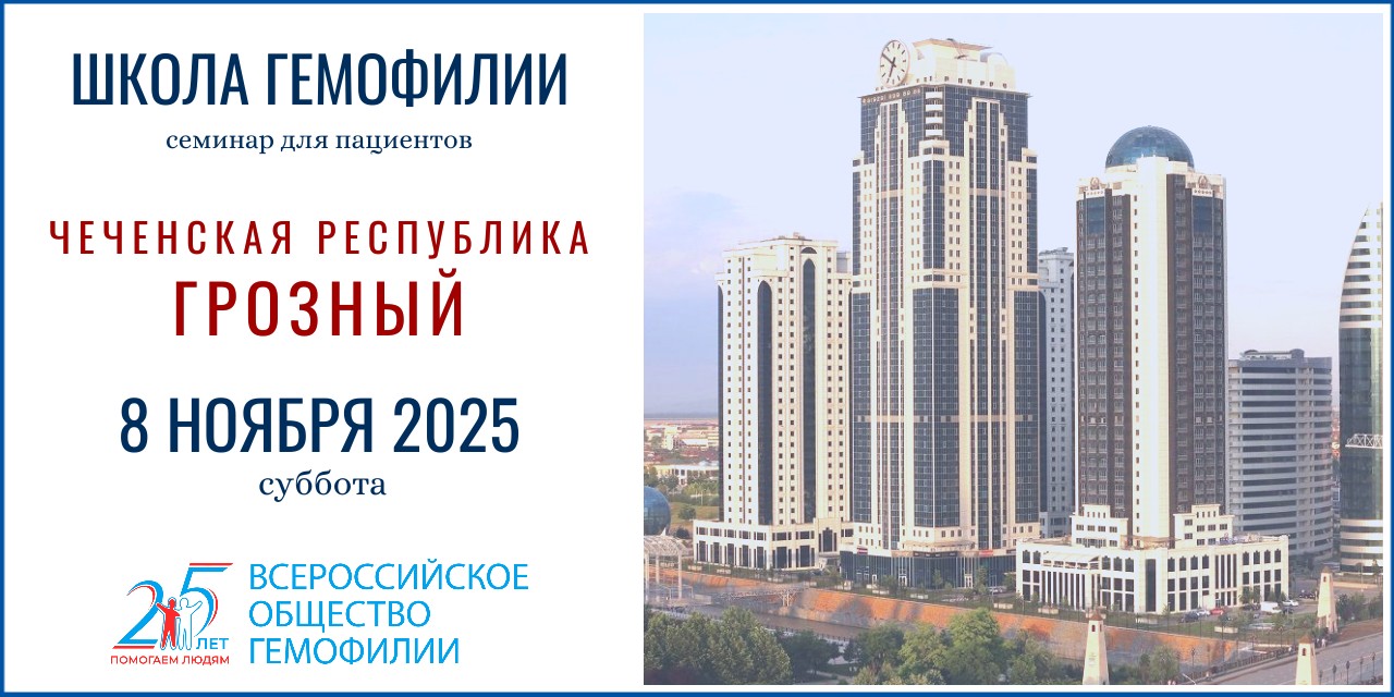 Информационный семинар "Школа гемофилии" состоится в г. Грозный 8 ноября 2025 года.