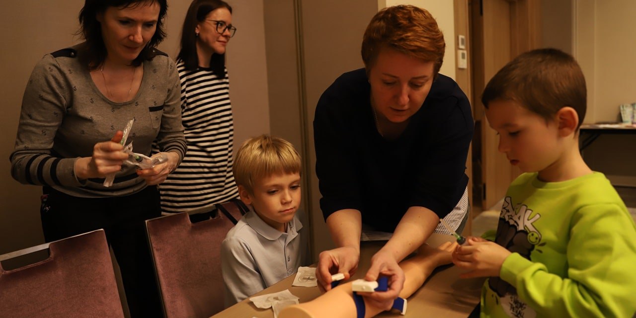Было проведено занятие по внутривенному введению препаратов свертывания крови нашими пациентами под руководством медицинской сестры. Эта школа помогла многим участникам приобрести навыки самостоятельного введения препаратов.