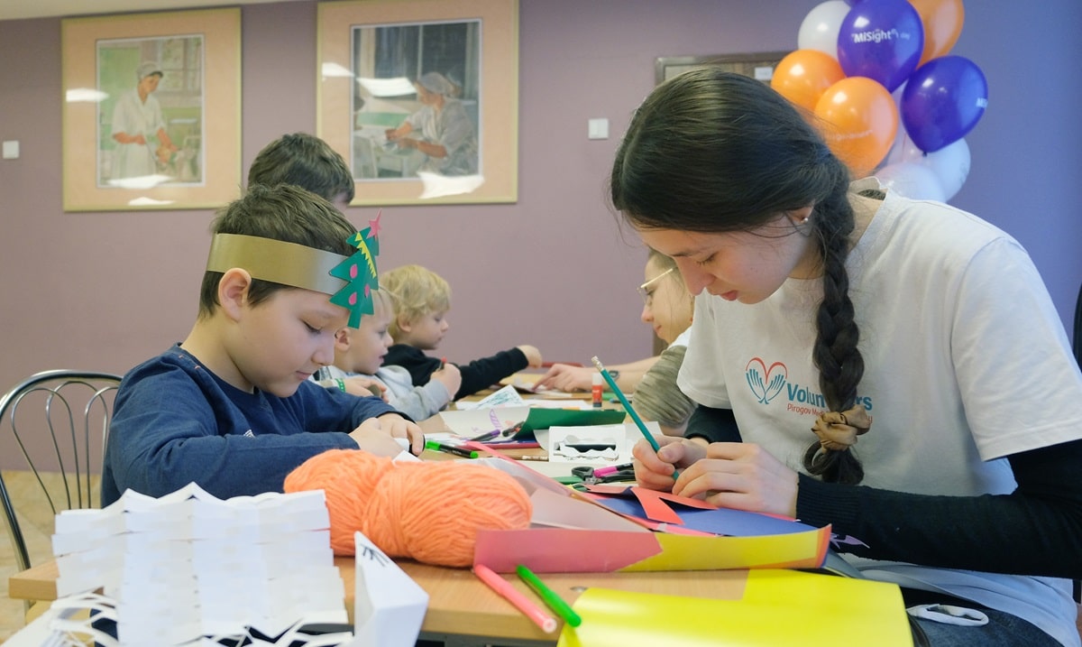 Пока в большом конференц-зале родители слушали презентации, ребята, которые пришли с родителями на Школу, занималась рисованием, мастерили новогодние поделки. С ними занимались добровольцы из медуниверситета, будущие врачи. Волонтерская помощь была оказана БФ "Кораблик" при содействии Центра волонтерской и патронажной помощи Морозовской больницы.
