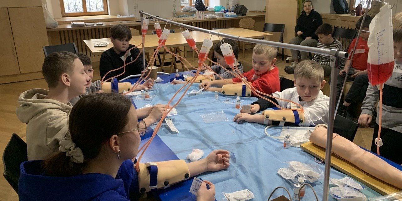 На занятии «Школы мужества» ребята с помощью наших медсестер Морозовской больницы и НМИЦ гематологии учились навыкам самопомощи как в повседневной жизни, так и в экстренных ситуациях. Практиковались на муляжах в выполнении самостоятельных инъекций (внутривенных и подкожных) для лечения в домашних условиях, учились останавливать кровотечения и правильно накладывать повязки. Обменивались личным опытом в неформальной обстановке.