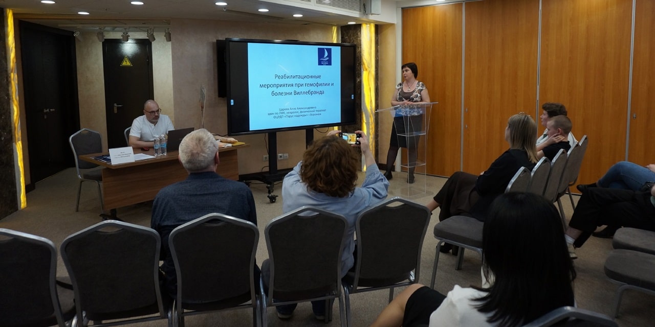 - Царева Алла Александровна, врач ЛФК АУ ВО «"Областной центр реабилитации детей и подростков с ограниченными возможностями "Парус надежды" рассказала о реабилитационных мероприятиях при гемофилии и Виллебранда.
