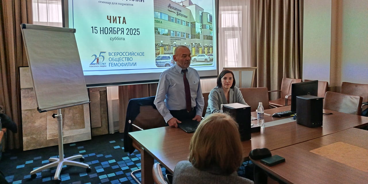 15 ноября 2025 года состоялось плановое мероприятие для пациентов (Школа гемофилии) в г. Лечебно-диагностический и реабилитационный центр «Академия здоровья», ул. Коханского, 13, Чита, конференц-зал.