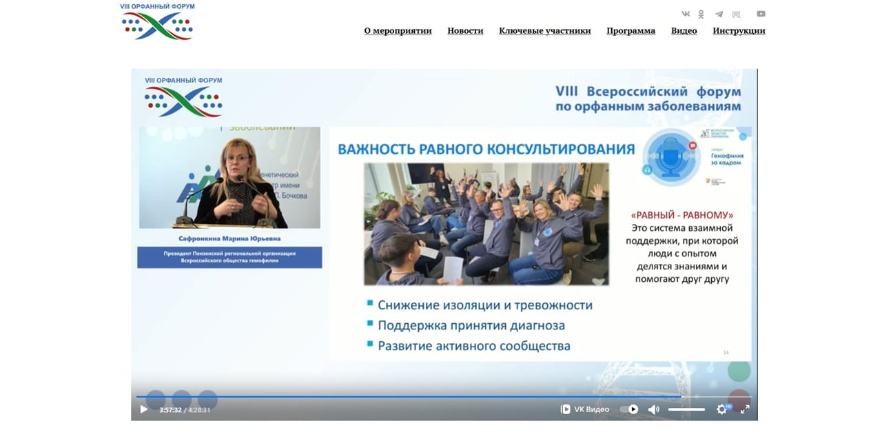 28 февраля 2026 года, во Всемирных день редких заболеваний, проект «Гемофилия за кадром» был представлен на VIII Всероссийском орфанном форуме - одной из ключевых федеральных площадок, посвящённых вопросам помощи людям с редкими (орфанными) заболеваниями. Подробнее о форуме на официальном сайте: https://forum-vsp.ru/orf-8/
