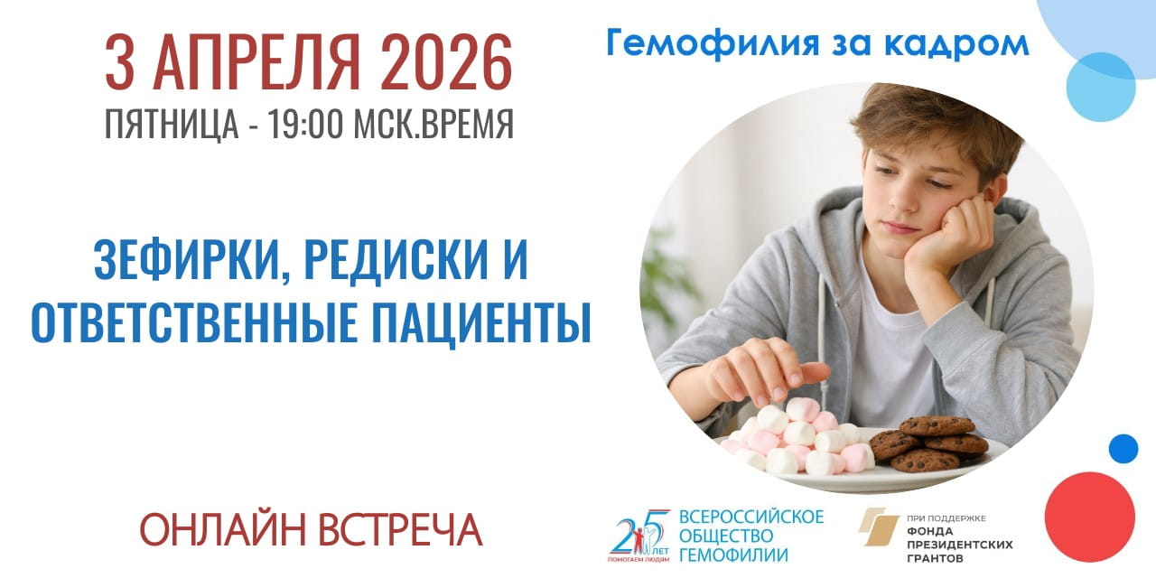 ПРИГЛАШАЕМ на онлайн встречу молодежной площадки проекта «Гемофилия за кадром» 3 апреля (пятница) в 19:00 по московскому времени.