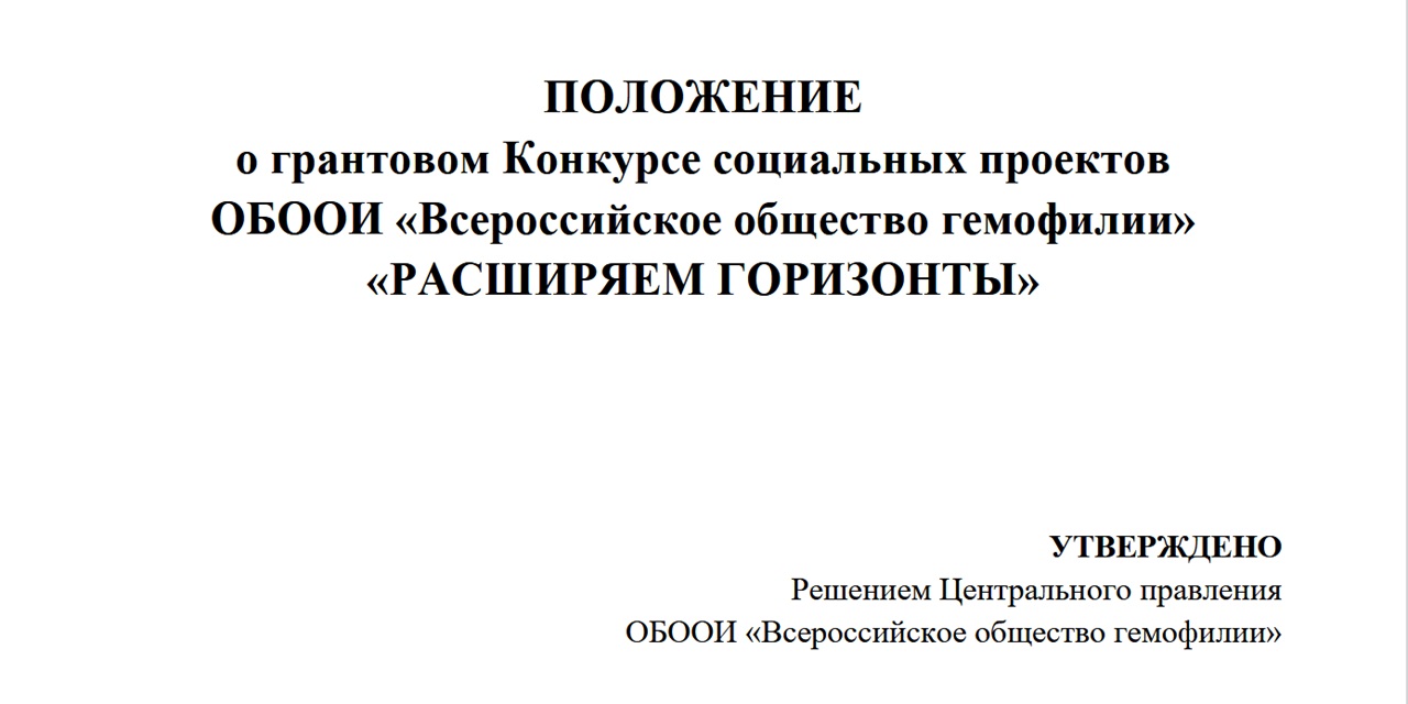 Положение о грантовом Конкурсе Всероссийского общества гемофилии опубликовано для ознакомления и подготовки заявок