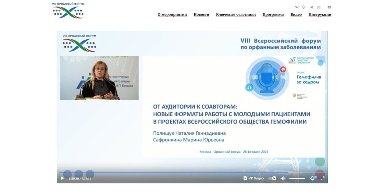 Проект «Гемофилия за кадром» был представлен на VIII Всероссийском орфанном форуме в Москве