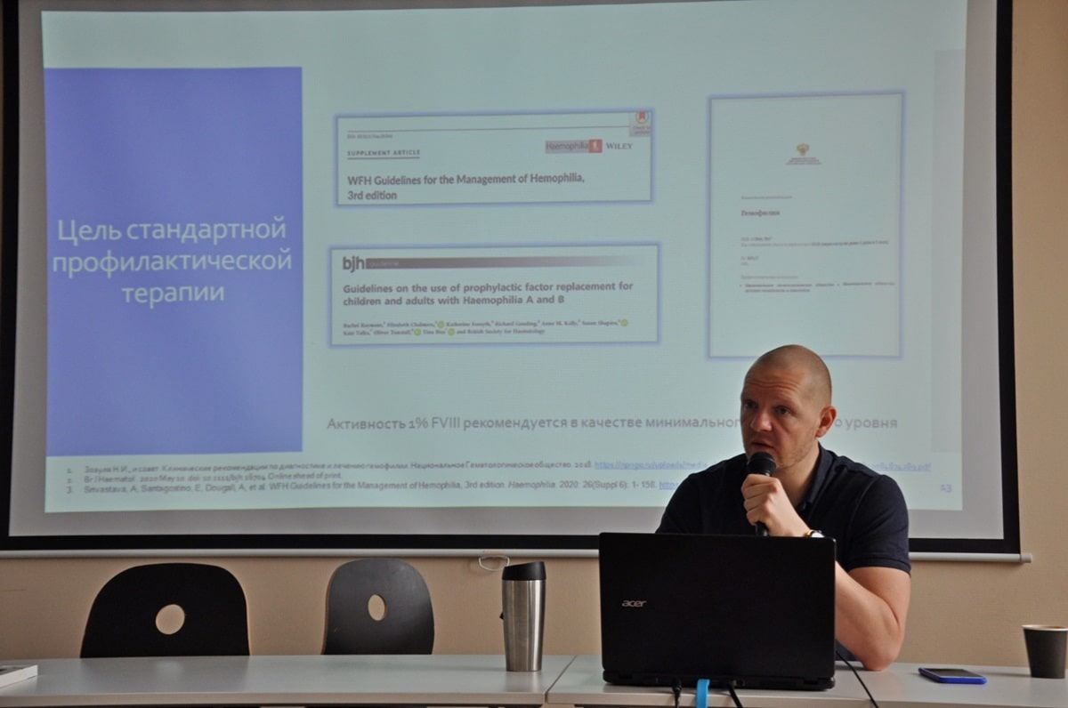 Далее с презентацией о профилактическом лечении и инновационных препаратах выступил Жарков Павел Александрович - детский врач-гематолог, гемостазиолог ФГБУ Федеральный научно-клинический центр детской гематологии, онкологии и иммунологии им. Д. Рогачева Минздрава России, г. Москва. Федеральный эксперт рассказал о методах лечения и диагностике у детей, приведя примеры из общероссийской практики. Наибольший интерес вызвала та часть презентации, которая касалась перспективных разработок в фармацевтической промышленности, которые в ближайшие годы позволят еще более улучшить качество профилактического лечения пациентов, что коренным образом повлияет на улучшение качества их жизни и, скорее всего, сравняет статистические показатели ее продолжительности со среднестатистическими данными здорового населения!